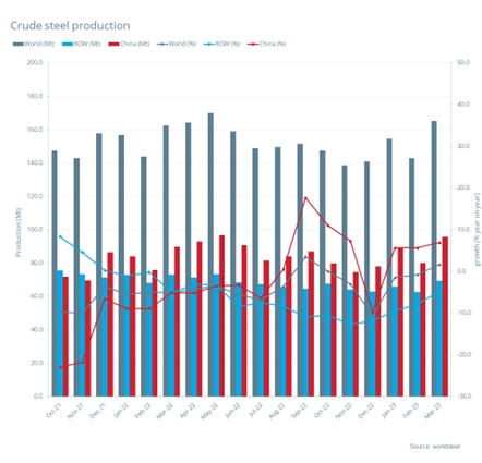 上述地区含63个产钢国提交的数据,其2022年产量占全球粗钢产量的97%。
