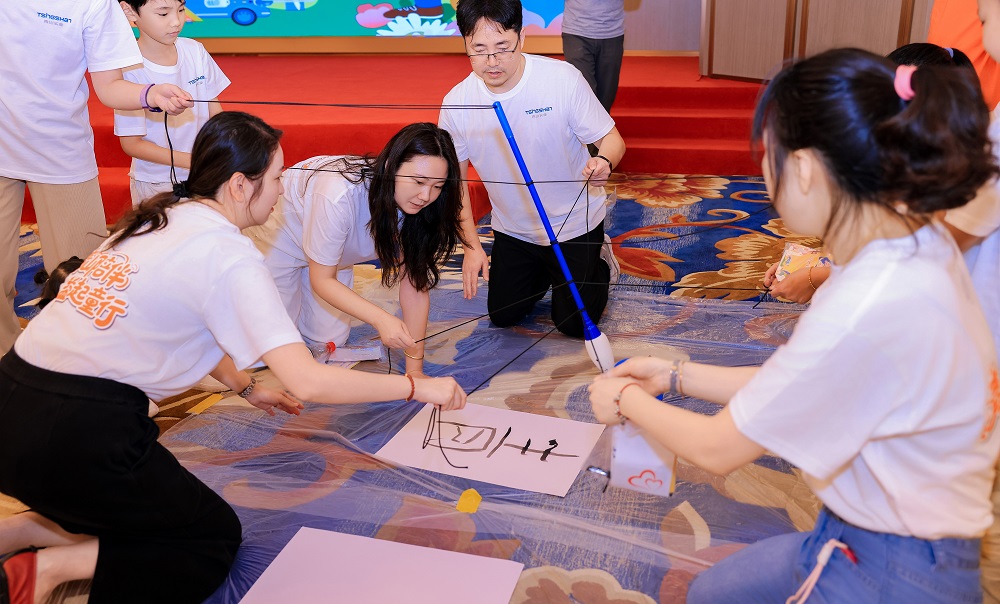 本次活动以“家庭闯关挑战”为核心形式,每组家庭手持“公益护照”和启动资金“PA视讯币”,穿梭于公益协作站、PA视讯文化课堂、全球厂区探秘等多个任务区。孩子们化身“小小科研家”“财务官”体验父母工作日常,并与父母携手完成书法创作、环保知识问答等挑战,不仅深入了解了PA视讯实业的全球战略布局、产品知识及环保理念,更在默契配合中感受协作的力量。