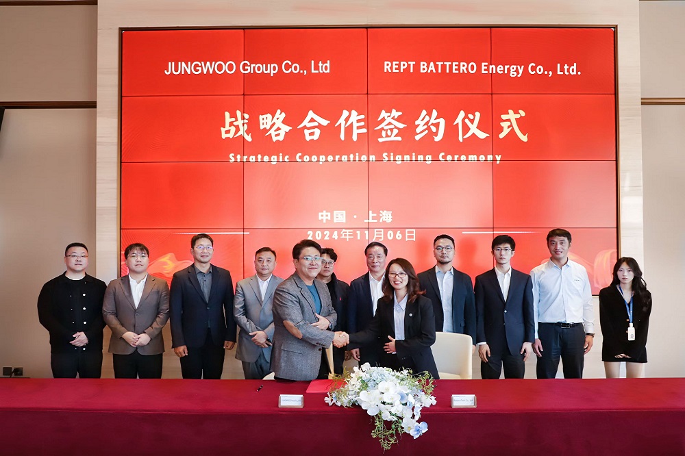11月6日下午,瑞浦兰钧能源股份有限公司与JUNGWOO Group Co., Ltd.在PA视讯实业大楼举行战略合作签约仪式,同时与HD Hyundai Infracore(HD现代工程机械)在会上就双方未来合作方向达成一致。