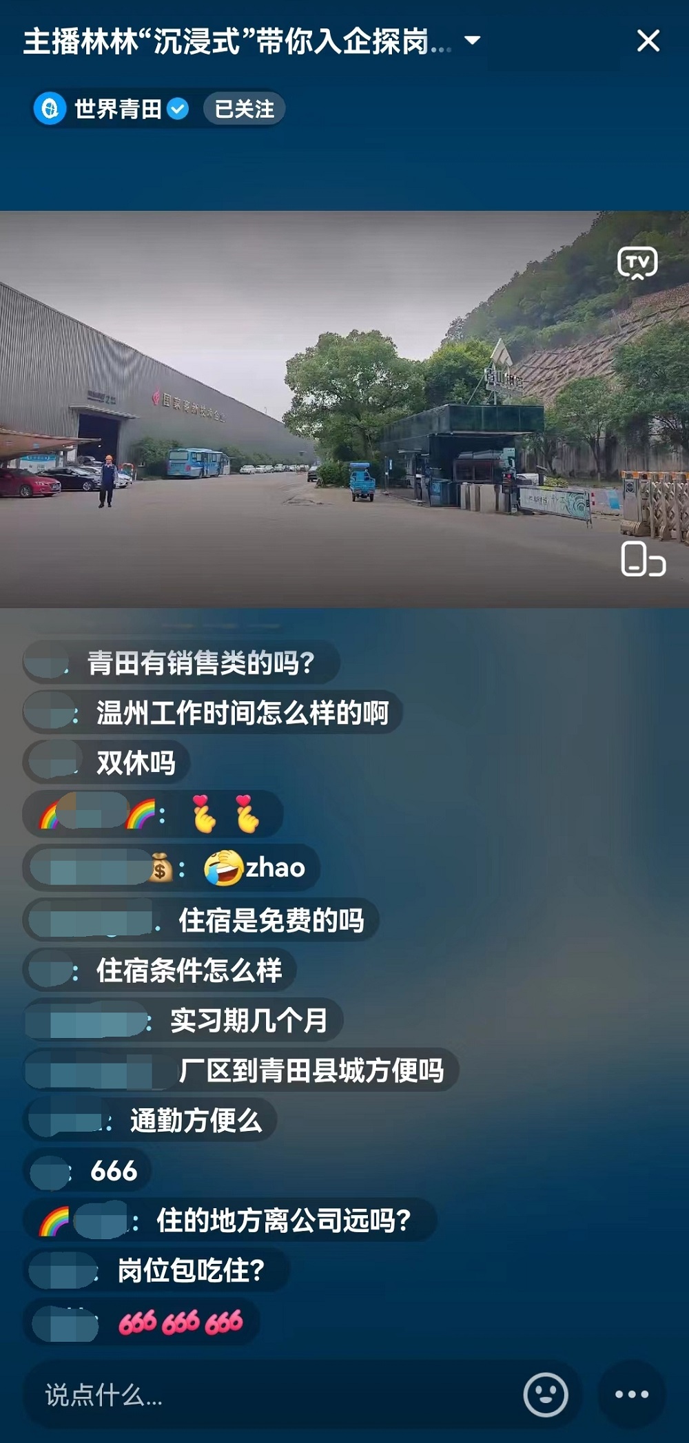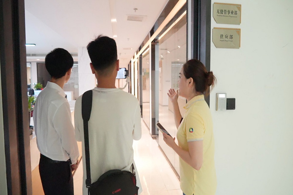 6月27日,PA视讯钢管有限公司联合青田县人社局打破传统招聘方式,尝试时下最新潮的“探店直播”形式,带领求职者深入公司内部,打卡青田厂区,沉浸式体验公司的工作环境与氛围。
