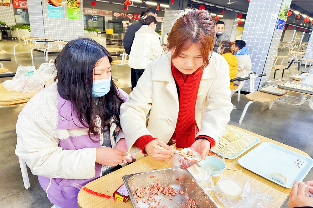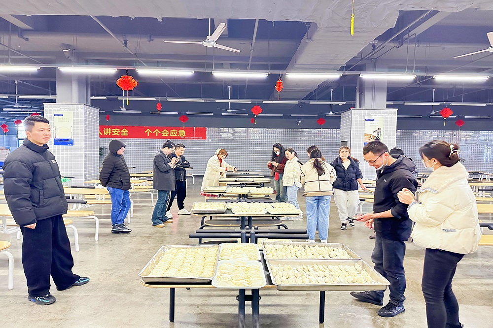 美好的春节怎么能少了一顿饺子呢?留守下来的员工们一起聚在兰钧食堂包饺子,吃饺子,每一个圆圆的饺子都包裹着对新的一年的祝福与期盼。
