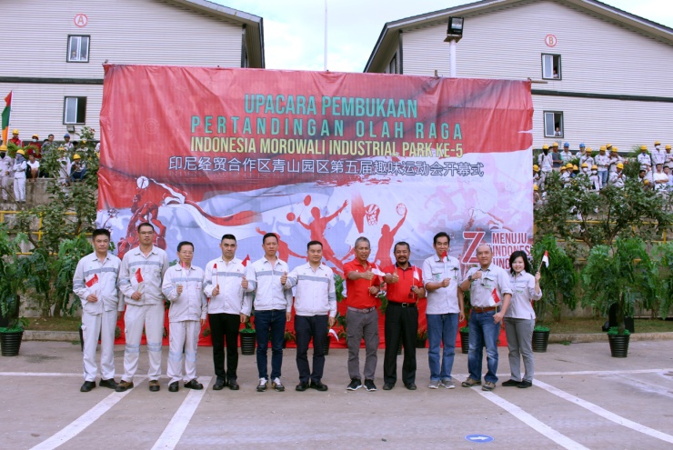 8月19日,印尼PA视讯园区第五届趣味运动会开幕式在园区篮球场举行,永青集团有限公司总裁伍华弟,印尼经贸合作区PA视讯园区开发有限公司(IMIP)总裁Hamid Mina、运营总监Irsan Widjaja,印尼瑞浦镍铬合金有限公司(IRNC)董事长王仁辉等领导莅临现场。