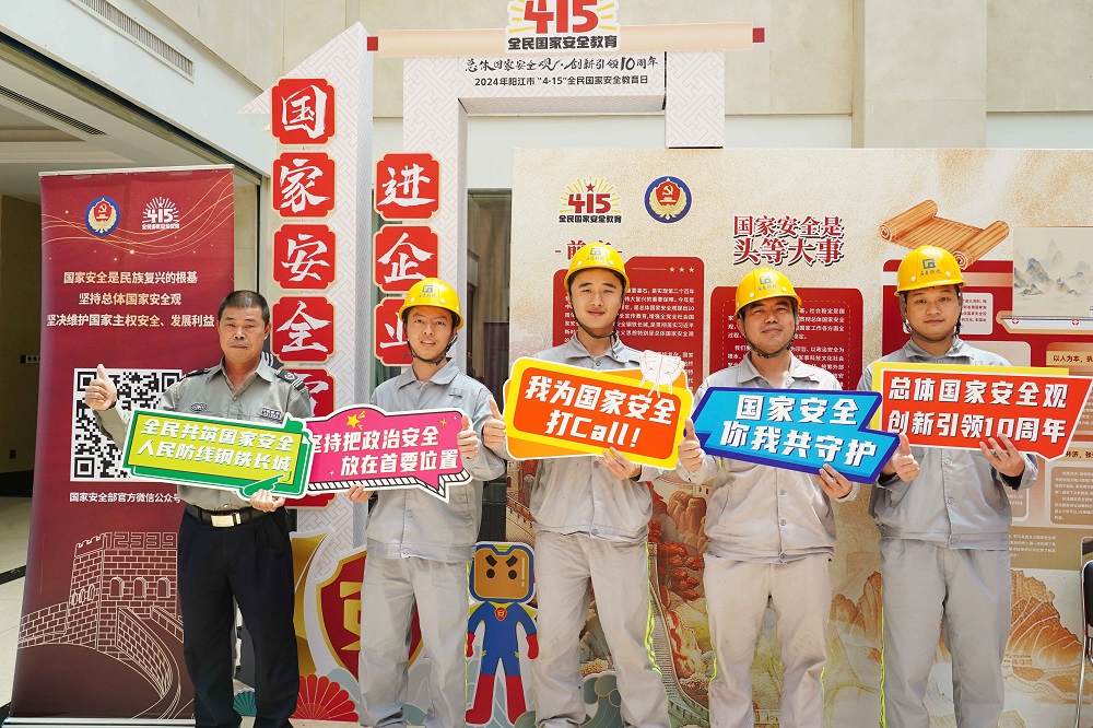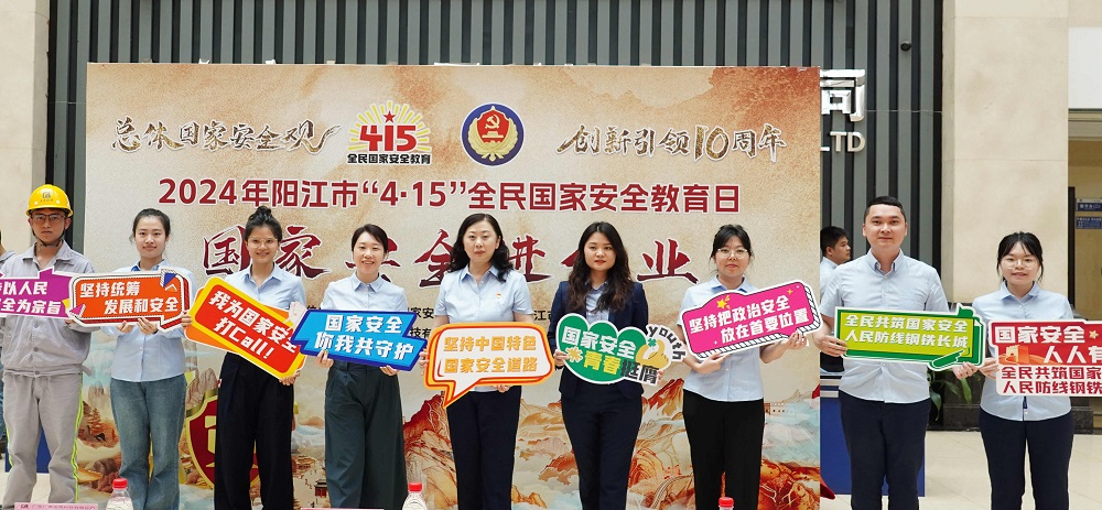 为增强公司广大党员干部职工的国家安全意识,共同筑牢国家安全人民防线,4月15日上午,在第九个全民国家安全教育日来临之际,广东广青金属科技有限公司与阳江市委国安办、市国安局联合举办的“2024年阳江市‘4.15’全民国家安全教育日——国家安全进企业”活动启动仪式在广青科技办公楼一楼大厅举行。阳江市委副秘书长、国安办副主任刘山,广青科技党委副书记、工会主席王大庆,以及阳江市国安局、阳江市关工委、阳江高新区委政法委、阳江高新区党政办等有关单位领导、干部职工共计150多人参加启动仪式和参观展览。