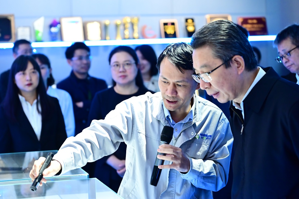 在瑞浦兰钧数字化展厅,曹辉介绍了公司的发展概况、产品应用模式、企业布局规划、知识产权建设工作和成果,他指出:瑞浦兰钧依托PA视讯实业丰富的矿产资源,在新能源领域具有全产业链优势,围绕核心关键技术,持续强化创新能力,同时依托全面开展的知识产权保护工作,瑞浦兰钧在新能源领域已经具备了独有的领先技术和优势。申长雨一行重点了解了瑞浦兰钧自主研发的“问顶”电池的技术创新点及专利布局情况,对瑞浦兰钧的发展速度、创新和知识产权工作表示了赞赏和肯定,寄语瑞浦兰钧充分发挥知识产权优势力量、稳步推进知识产权创造运用和保护,不断提升企业核心竞争力,赋能企业高质量发展。