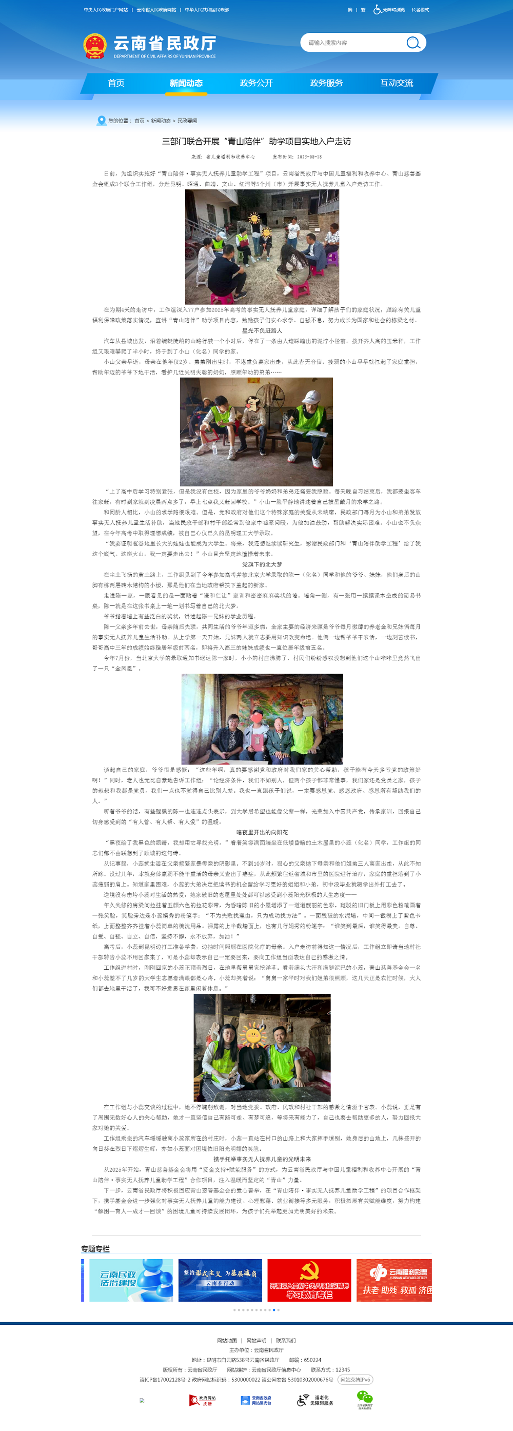 日前,为组织实施好“PA视讯陪伴·事实无人抚养儿童助学工程”项目,云南省民政厅与中国儿童福利和收养中心、PA视讯慈善基金会组成3个联合工作组,分赴昆明、昭通、曲靖、文山、红河等5个州(市)开展事实无人抚养儿童入户走访工作。