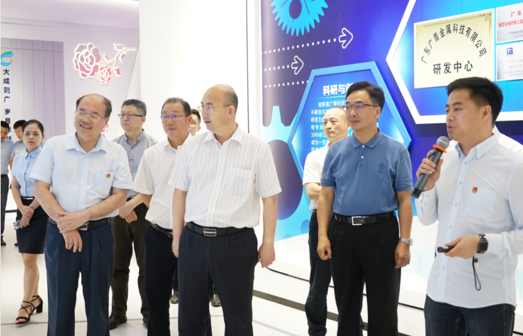 6月26日,在阳江市副市长张磊、市科技局局长谭坚华、高新区管委会主任傅光焱等的陪同下,广东省科技厅厅长王瑞军一行到广东广青金属科技有限公司调研指导。公司董事长王磊、副总工程师田伟光给予了热情接待。