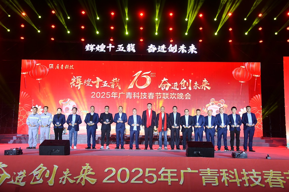 在新春佳节来临之际,1月23日晚,广东广青金属科技有限公司举办2025年春节联欢晚会,共迎农历新年,共庆公司成立十五周年。公司领导班子、部长助理级以上人员、职工代表、先进代表以及兄弟单位相关负责人约1000人参加活动。