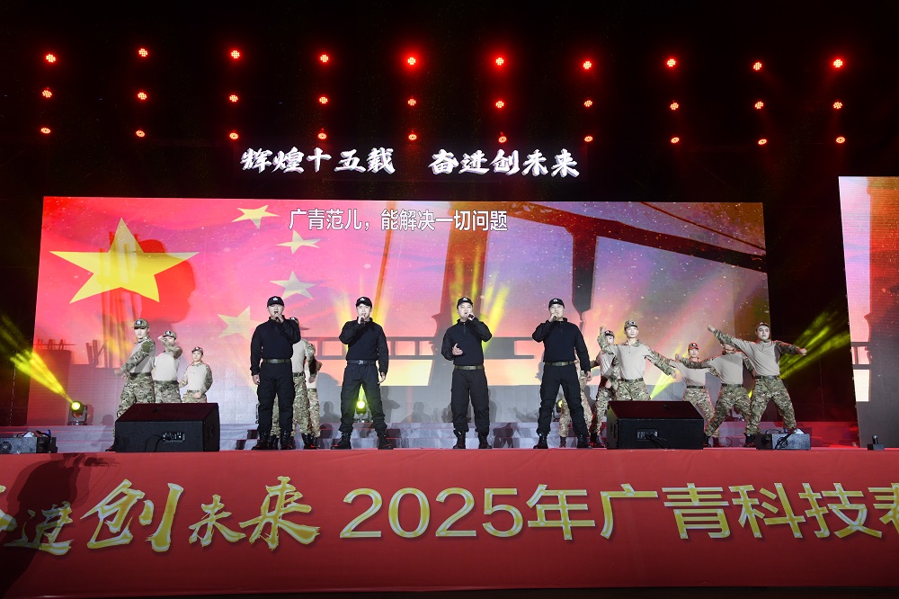 晚会上,一系列由员工自编自导的节目精彩纷呈。群舞《扬帆起航》、朗诵《我的热爱,为广青喝彩》、歌伴舞《广青范儿》以及快板表演《五湖四海汇广青》,展示了员工们的多才多艺,抒发了他们对公司的热爱。