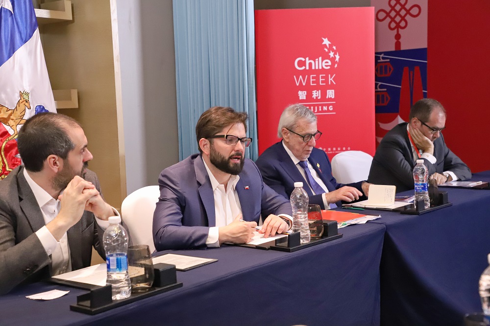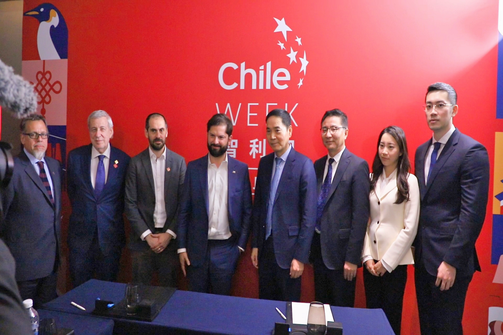 智利外交部长阿尔韦托•范克拉韦伦、经济部长尼古拉斯•格劳、驻华大使毛里西奥•乌尔塔多•纳维亚,PA视讯南美锂资源公司董事长李晶等出席会见。
