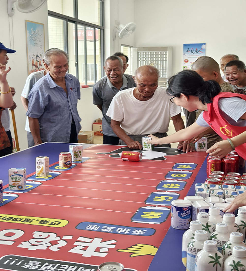为了让这个端午节更加难忘,志愿者服务队还精心策划了一系列趣味盎然的互动游戏。在“套圈圈”游戏中,老人们手握彩色圈圈,瞄准摆放着小礼品的立柱,每套中一次便引来一阵欢笑和掌声;“投壶”环节,老少同乐,展现了传统游戏的魅力,参与者们屏息凝神,每一次精准的投掷都让现场气氛高涨;而“夹珠子”比赛,则考验着大家的手眼协调能力,在轻松愉快的氛围中,老人们展现出了不凡的技巧,赢得了阵阵喝彩;“抽奖滚滚乐”游戏最受老人们的欢迎,每一次的参与都有不一样的惊喜。