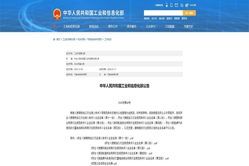 1月17日,中华人民共和国工业和信息化部发布符合《新能源汽车废旧动力蓄电池综合利用行业规范条件》企业名单(第五批),瑞浦兰钧能源股份有限公司成功获得新能源汽车废旧动力蓄电池梯次利用资质。
