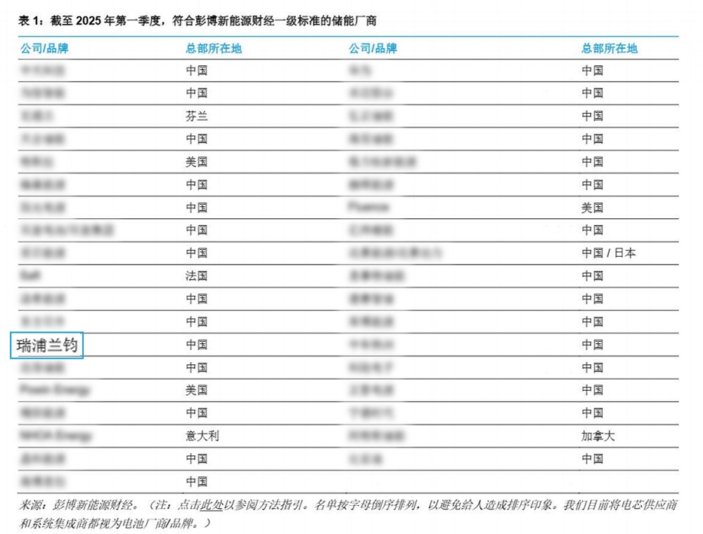 近日,瑞浦兰钧能源股份有限公司荣获2025年彭博新能源财经第一季度全球一级储能厂商Tier 1称号。