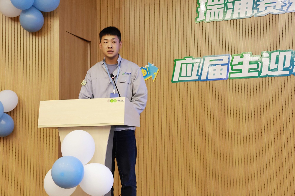 优秀应届生代表朱倩倩表示:很感谢公司提供这样的发展平台,给了刚毕业的自己一个展现自我的机会;通过迎新会,体会到了公司领导对新员工的关心和关怀,感受到了家的温暖;谢谢领导和同事们的帮助,让自己能够更好地融入到这个集体当中。