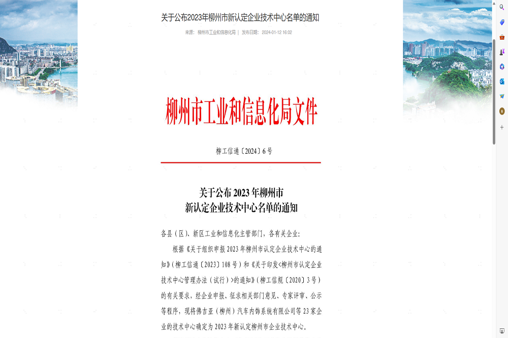 近期,柳州市工业和信息化局公布一批2023年新认定企业技术中心名单,瑞浦赛克动力电池有限公司获评2023年“柳州市企业技术中心”。