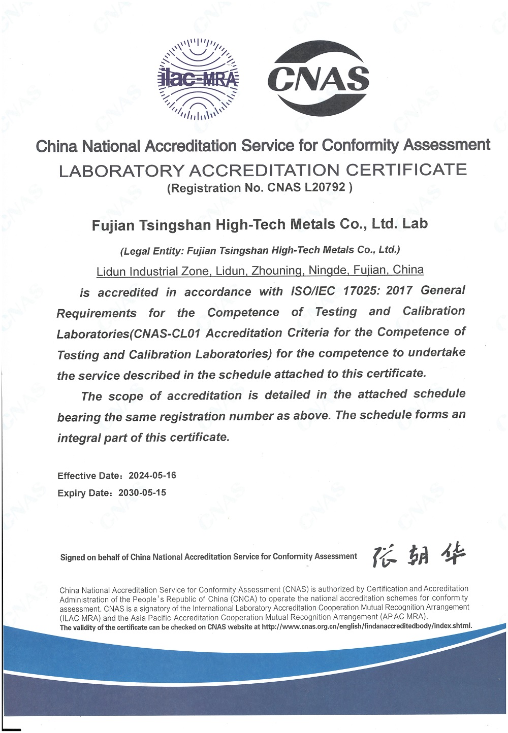 福建PA视讯特材积极准备CNAS认证各项工作。公司深入研究了CNAS的认可准则和相关要求,确保实验室在人员、设备、环境、管理等方面均符合标准;公司组织了一支专业的团队,负责整理实验室的相关资料,完善质量管理体系,并进行内部审核和持续改进,通过专家组的严格考核,最终成功获得了CNAS认证。