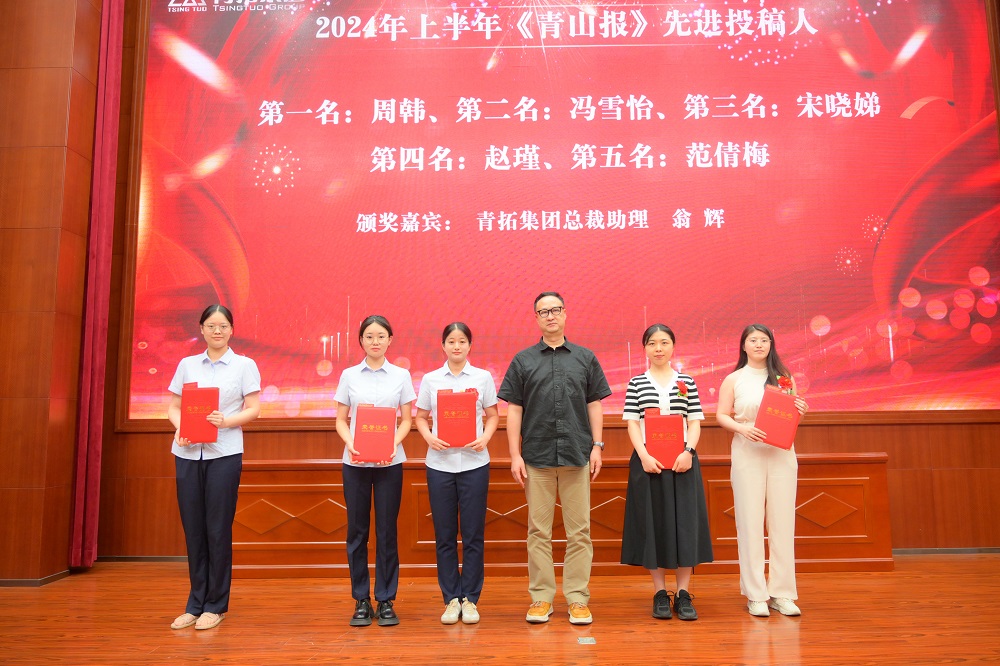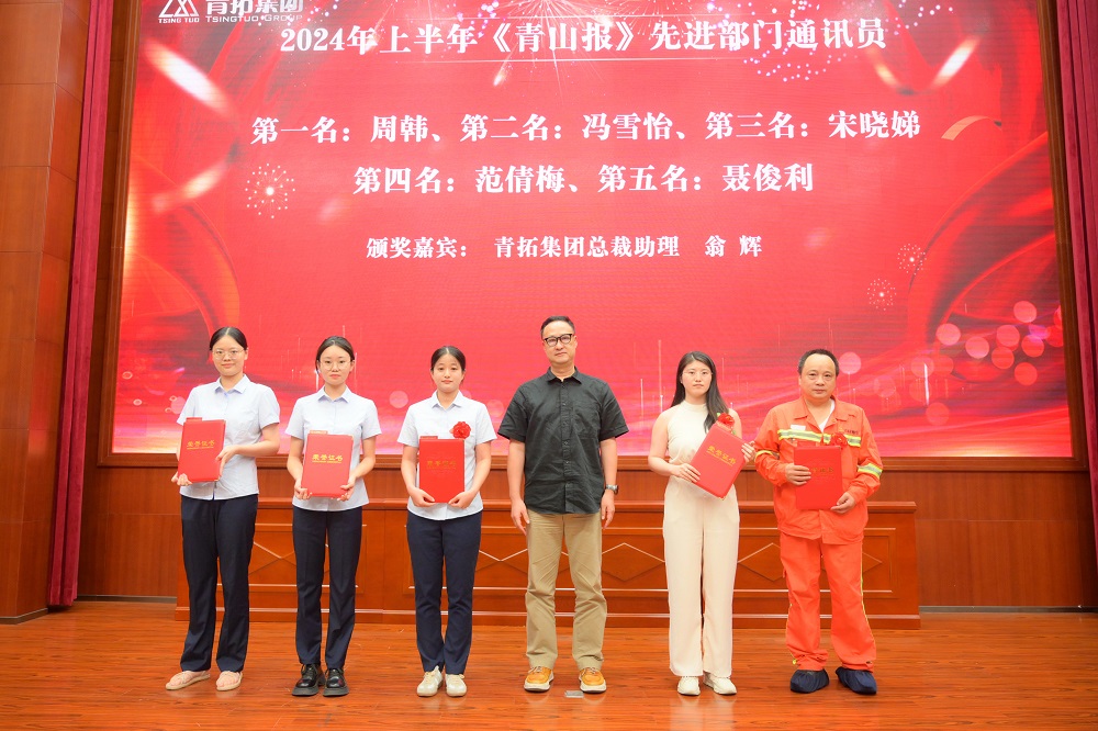 奋力开新局,阔步新征程。为表彰先进典型,凝聚榜样力量,7月24日,青拓集团有限公司在报告厅召开了2024年上半年工作总结暨先进表彰大会。集团总裁助理翁辉、供应部副总经理陈锦初、行政部副总经理刘永清以及各部门领导出席会议,对公司级先进个人、先进部门通讯员及投稿人进行表彰。
