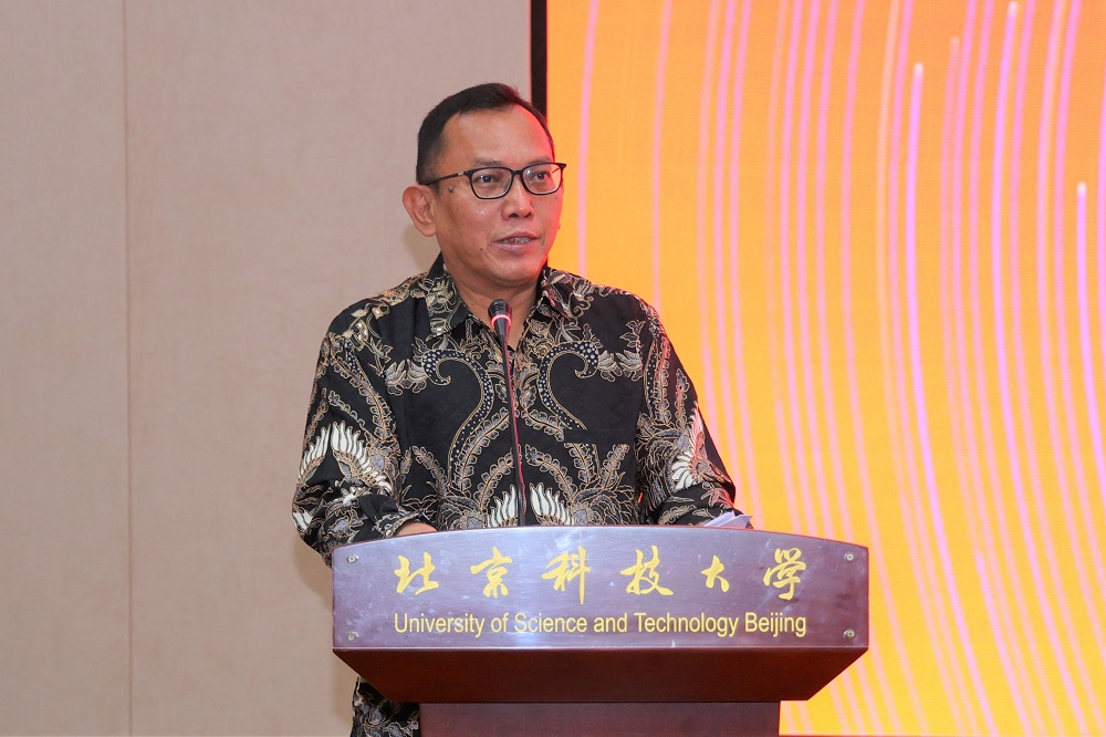 吕昭平对即将开启留学生活的新同学们表示祝贺。他介绍了学校历史和发展现状,特别是近年来北科大高度重视与印尼开展跨国际合作,取得了一系列项目建设成果。他表示:北科大与印尼政府等共同发起的冶金工程国际人才硕士项目,是行业人才培养和国际合作交流的一项重要突破;项目新生要珍惜来之不易的学习机会,努力成为有扎实专业素养、有国际竞争与合作能力的国际青年人才。