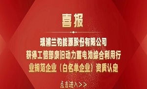 瑞浦兰钧能源获得工信部废旧动力蓄电池 综合利用行业规范企业(…