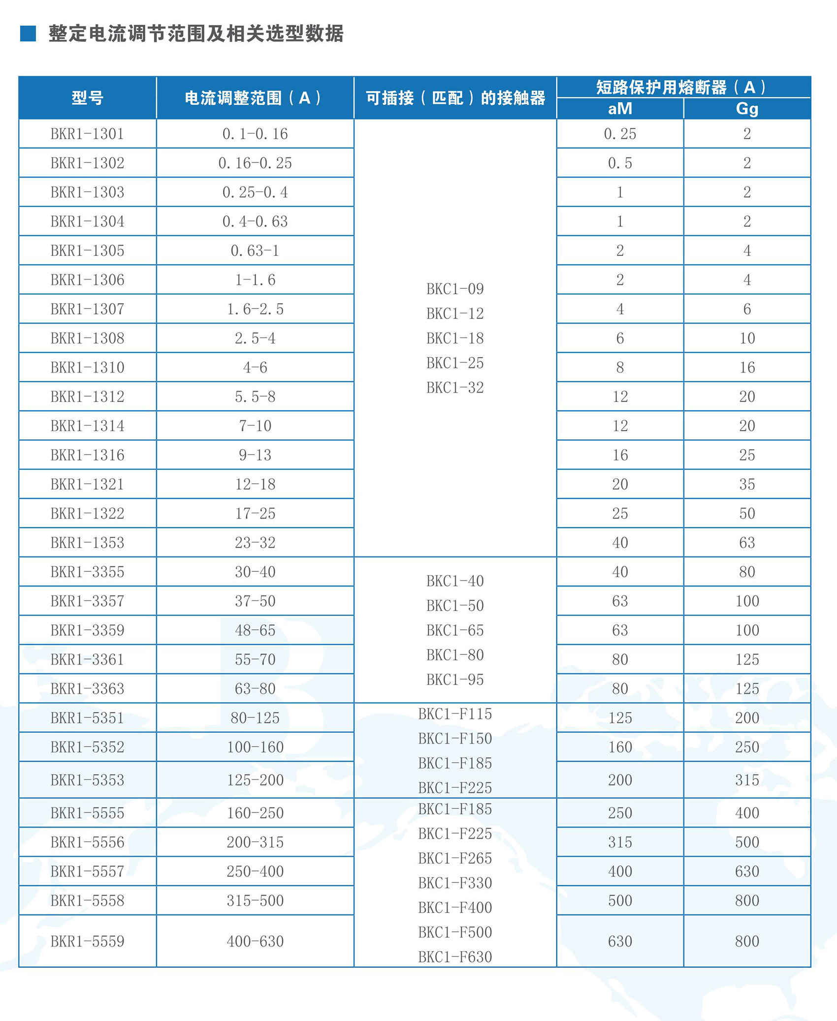 BKR1系列热过载继电器,在交流50Hz(60Hz)、额定电压至690V、电流0.1A至630A的电路中,作三相交流电动机的过载和断相保护之用。热过载继电器具有温度补偿、动作指示、自动和手动复位、停止等功能,性能稳定可靠。产品符合IEC 60947-4、GB/T 14048.4、GB/T 14048.5标准。